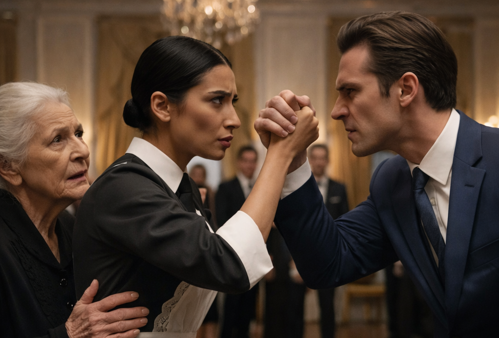 Parte 1: La furia en el salón El lujoso salón de fiestas brillaba con cristalería fina y manteles de seda importada, celebrando el cumpleaños número